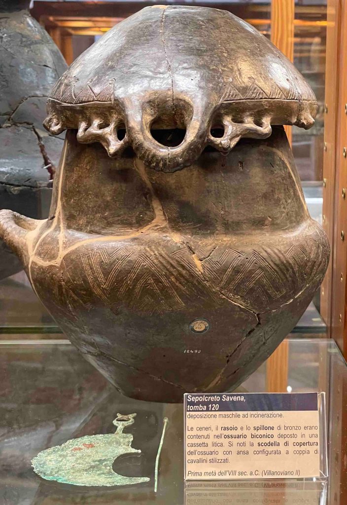 The earlier Villanovan culture was unknown until discovered by the amateur archeologist Giovanni Gozzadini in 1853. He uncovered a large necropolis at Villanova near Castenaso which is about 13km north east of Bologna. The Villanovan culture is now thought to have been the first stage of Etruscan civilisation and dates from around the 10th to the 7th century BC.