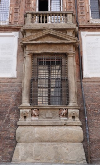 The adjacent Via de’Musei was once called Via della Morte and runs around past the portico of the Ospedale della Morte back to the Pavaglione.