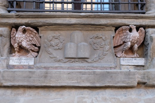 The inscription under the eagles refers to the Papal Vice-legate Girolamo Sauli who ruled Bologna in the Pope’s name in the 1550s.