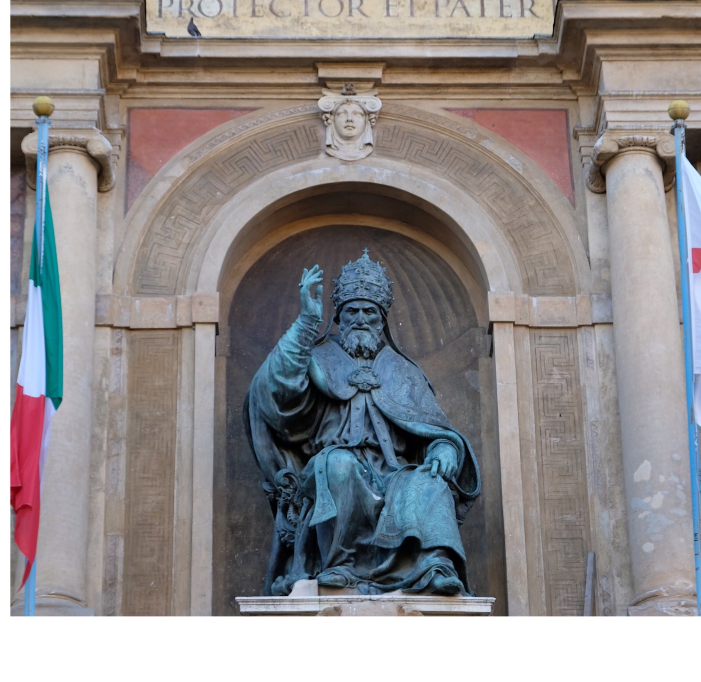 To protect the statue, the stone inscription was changed to say the statue was of San Petronio, the city’s patron. The Pope’s tiara was replaced by a bishop’s mitre and a crosier or staff placed in his hand.