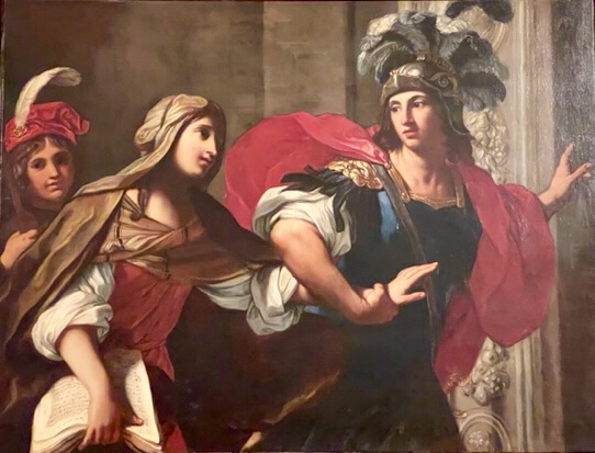 A 2022 exhibition in Bologna’s Palazzo Fava of the paintings from the collection of Michelangelo Poletti included the one below. Painted by Sirani in 1664, it depicts Alexander forcing the prophetess to enter the temple Of Apollo at Delphi.