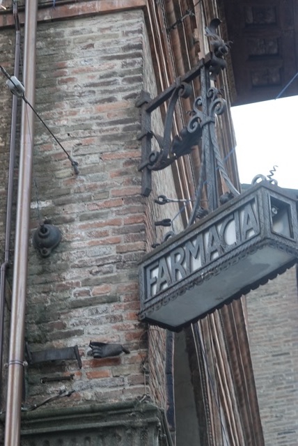 Wrought iron shop signs were popular in the 19th and 20th centuries. An attractive example is that of the wine shop of the Olindo family in Via Altabella, which has been in this location since 1934. Its sign features a traditional fiasco, or wine bottle, in a straw basket,