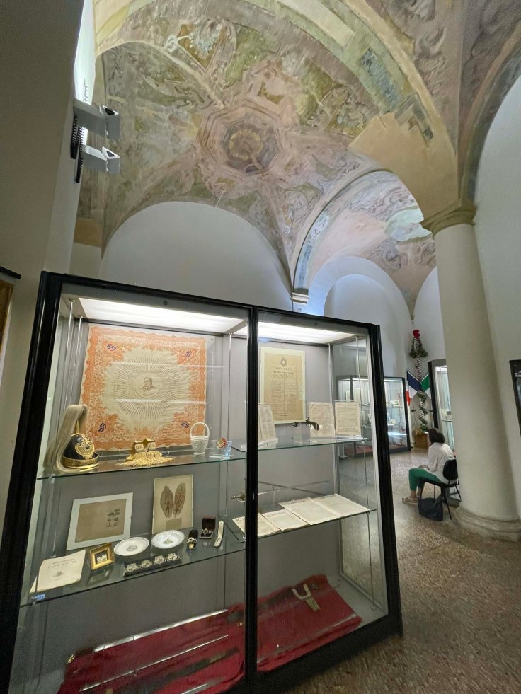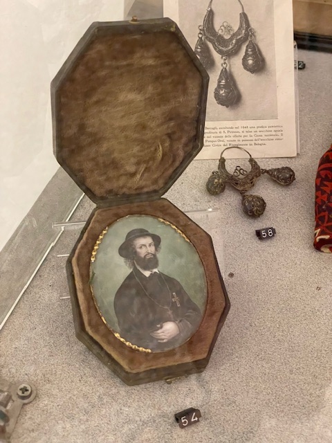 In 1848, the city had asked residents to donate valuable items to support the war then underway between Piemonte and the Austrians. On display is a donated earring of low value that demonstrates the wide support for the cause.